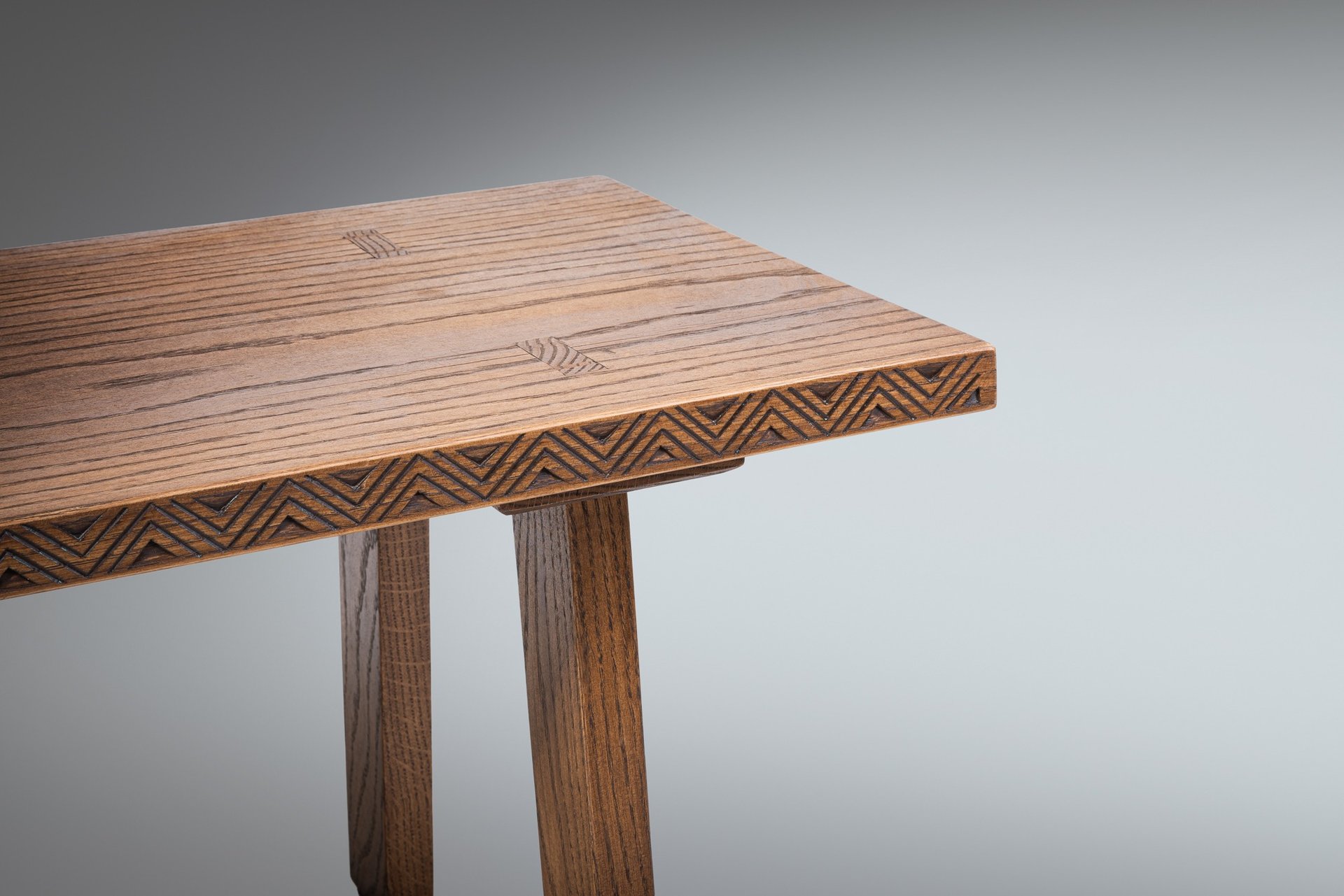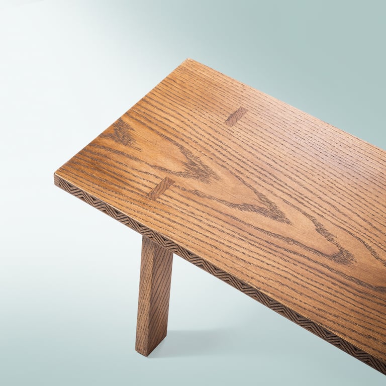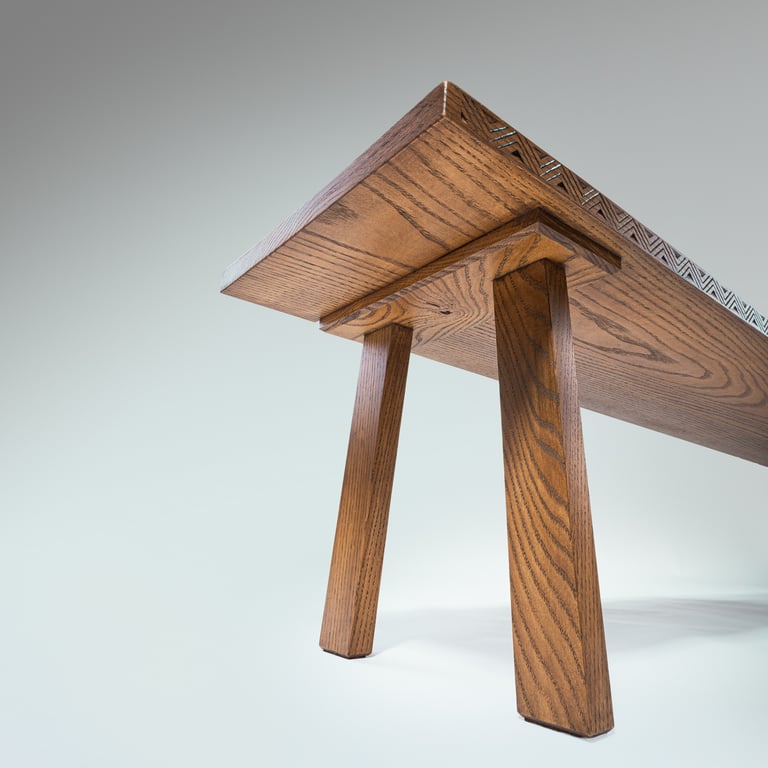 Handcrafted with traditional Lithuanian ornaments and Japanese joints. 148×32×35cm