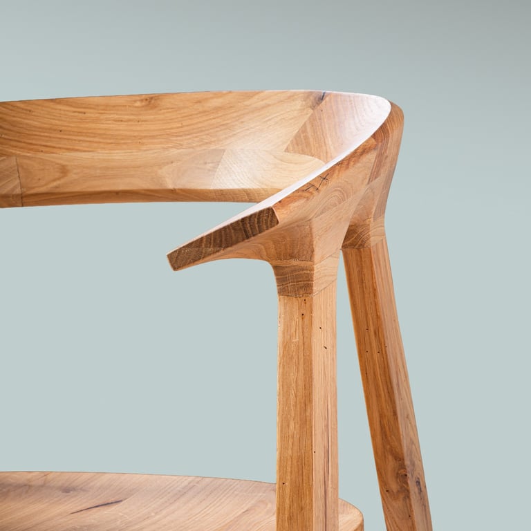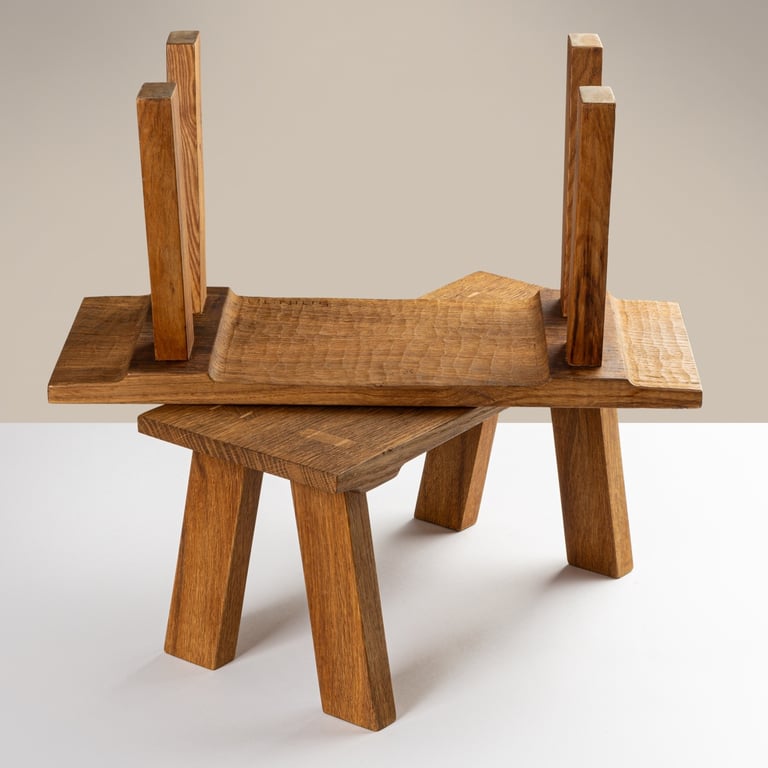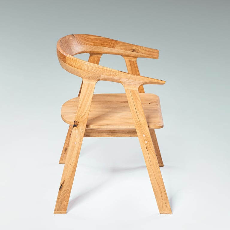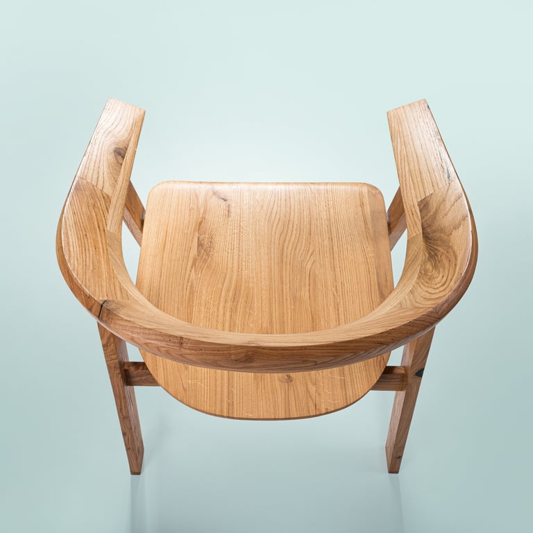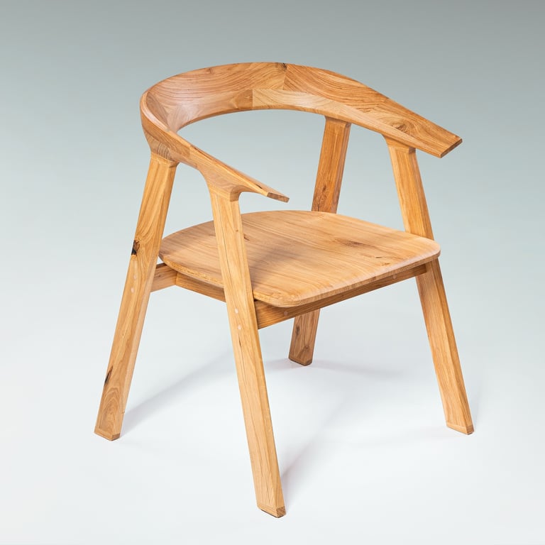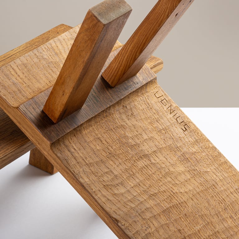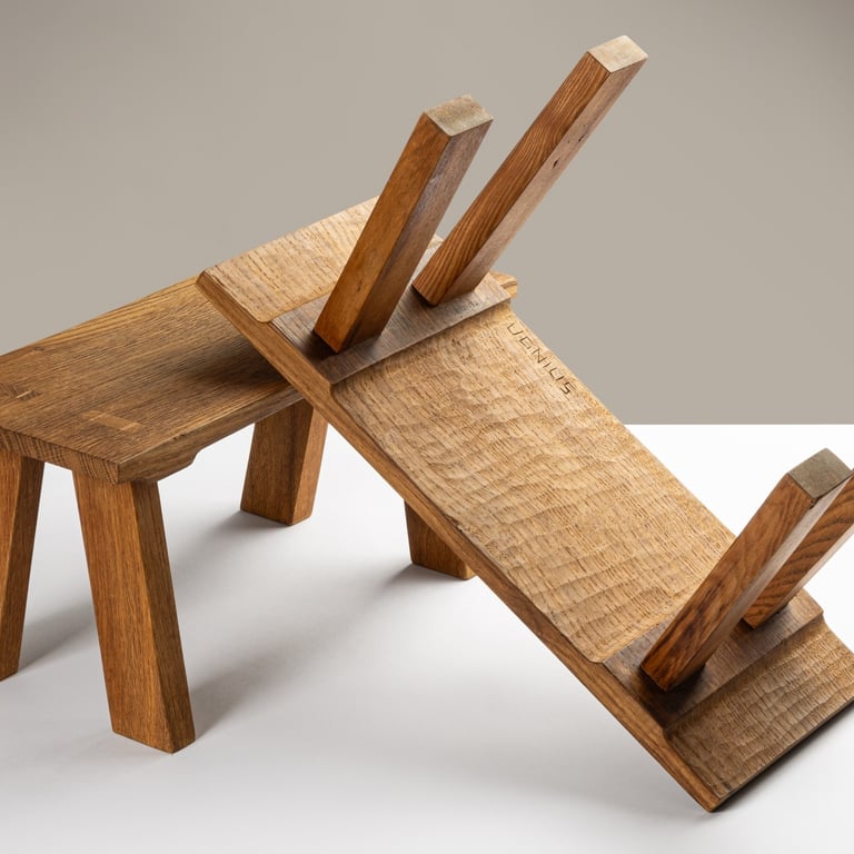 A sleek, handcrafted prototype blending Lithuanian tradition with modern minimalism. Made from oak, very comfortable. 48×58×81cm