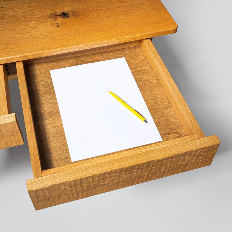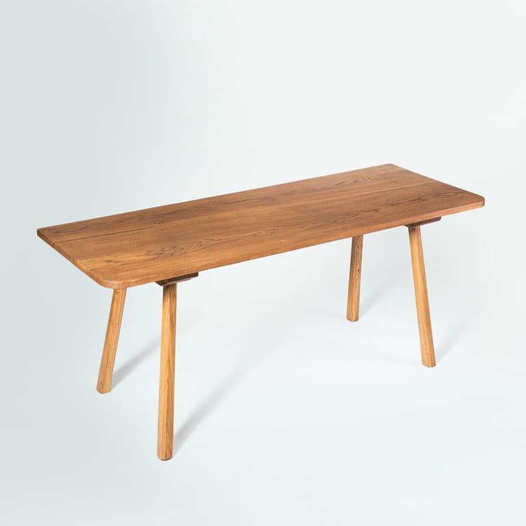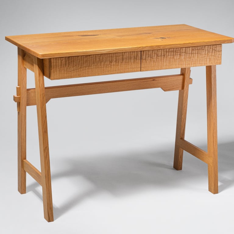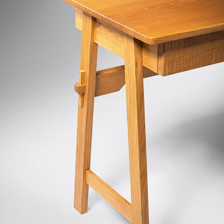 A durable children's writing desk made from solid oak, featuring traditional joinery for strength and authenticity. It fully disassembles into flat parts for easy transport and storage, reassembling securely. 46x94x75cm