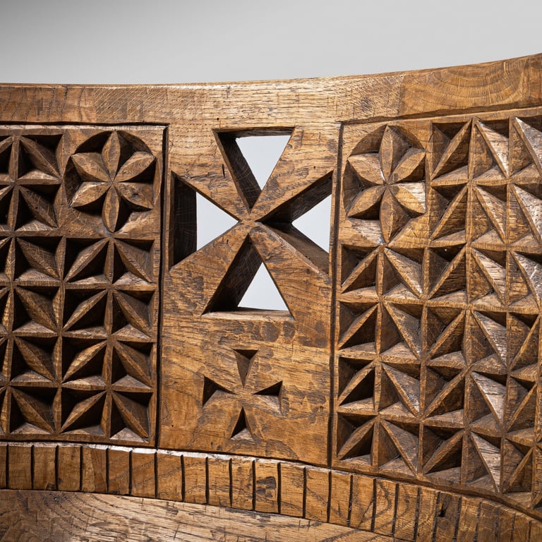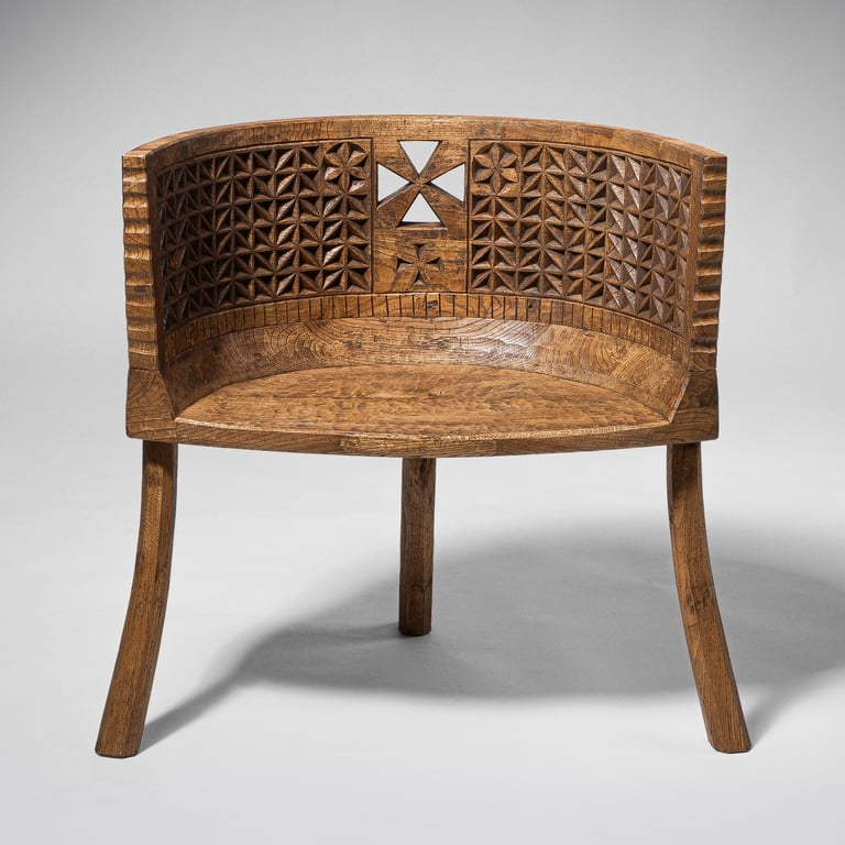 made from Lithuanian oak wood, using archaic carving technique. 77x45x78cm
